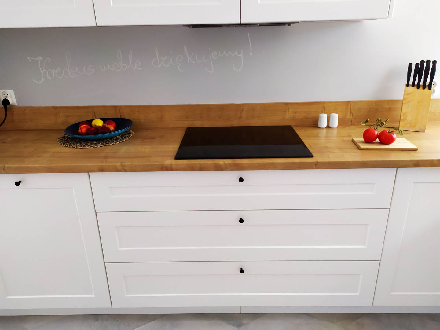 Wszystkie meble do przedpokoju, sypialni czy kuchni wykonane w ramach naszego stolarstwa meblowego w Warszawie posiadają gwarancję (24 miesiące) oraz serwis pogwarancyjny. Mając na uwadze jak największą ponadczasowość i funkcjonalność naszych wyrobów, projektujemy i tworzymy je w ten sposób, aby służyły one naszym klientom jak najdłuższy czas. Do produkcji mebli kuchennych w Warszawie – czy też takich przeznaczonych do innych typów pomieszczeń – używamy najlepszej jakości materiałów, gwarantując przy tym najwyższą jakość produktu. Dzięki temu kredens kuchenny, regał czy komoda na zamówienie z naszej warszawskiej firmy staje nie tylko estetyczna, ale też wyjątkowo trwała. Potrzebna jest półka albo szafka na buty na wymiar? Nasz warszawski zespół zaprojektuje ją oraz wykona w dbałości o najdrobniejsze szczegóły. Pomagamy także przy wyborze sprzętu AGD tak, aby zabudowa tworzyła spójną całość.